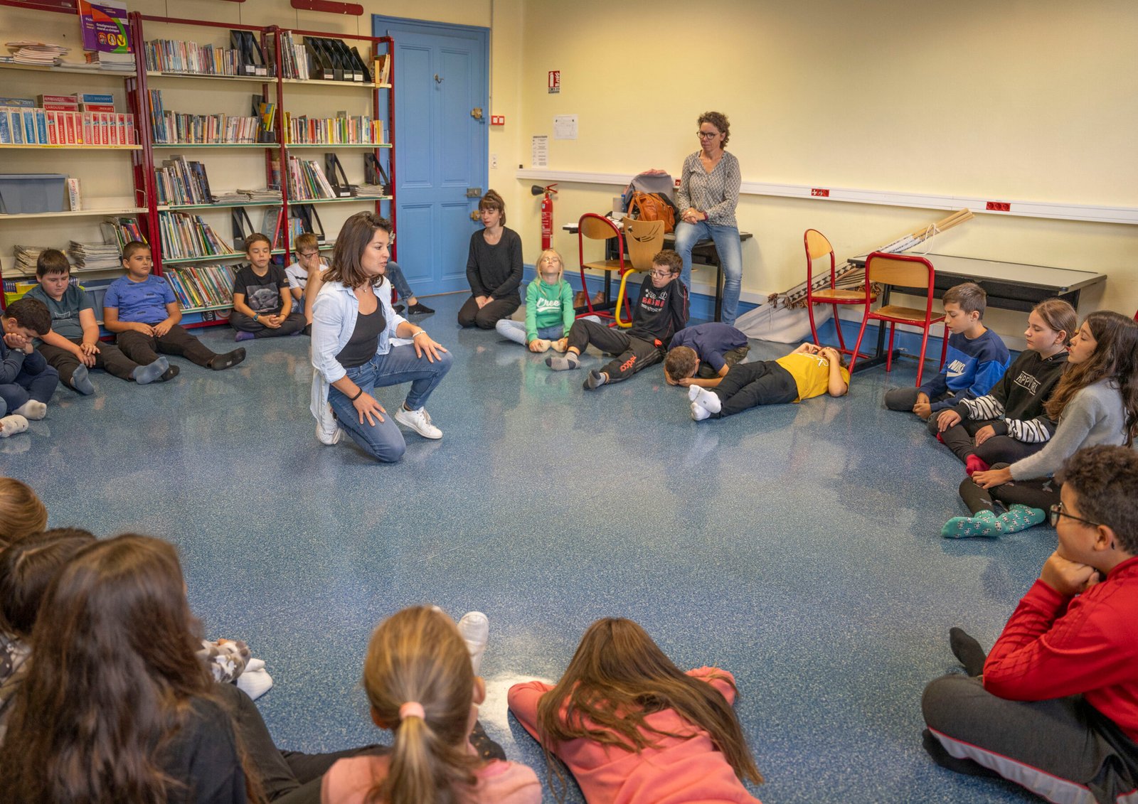 Ateliers danse et partages (4h d’intervention) animée par Lucie Delpierre aux Carrés, Avril 2023. Ce projet fait suite à la résidence de la compagnie aux Carrés en Février 2024.