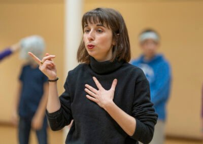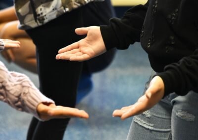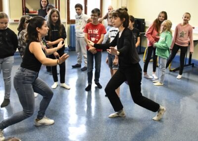 Ateliers de pratiques artistiques (échauffement danse et théâtre – 6 ateliers de 45min) à destination des jeunes amateurs participant au festival Lever de Rideau 2025 animés par L.Delpierre.