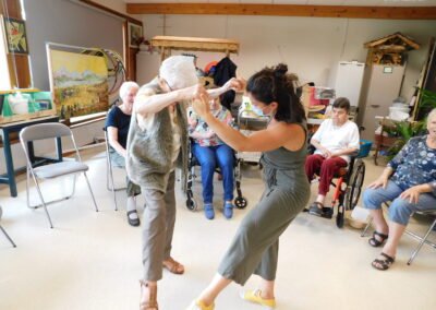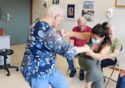 Ateliers de pratiques artistiques (danse, jonglage et partages – 3 ateliers de 2h) à destination des résidents de l’EHPAD, animés par Lucie Delpierre, en lien avec la représentation de ALCHIMISTES du 12/07/2024 à l’EHPAD Alfred Blanc.
